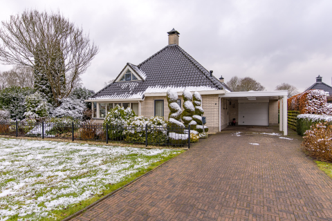 Op hoek van rustig straatje gelegen royaal vrijstaand woonhuis met aangebouwde serre, grote terrasoverkapping en stenen dubbele garage op 726 m2 grond.